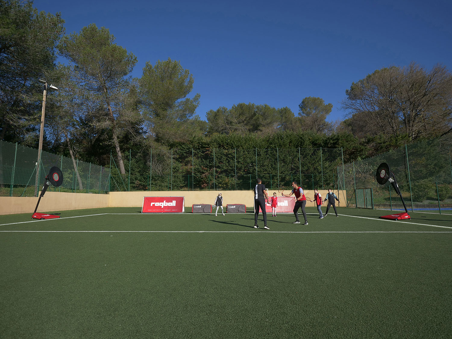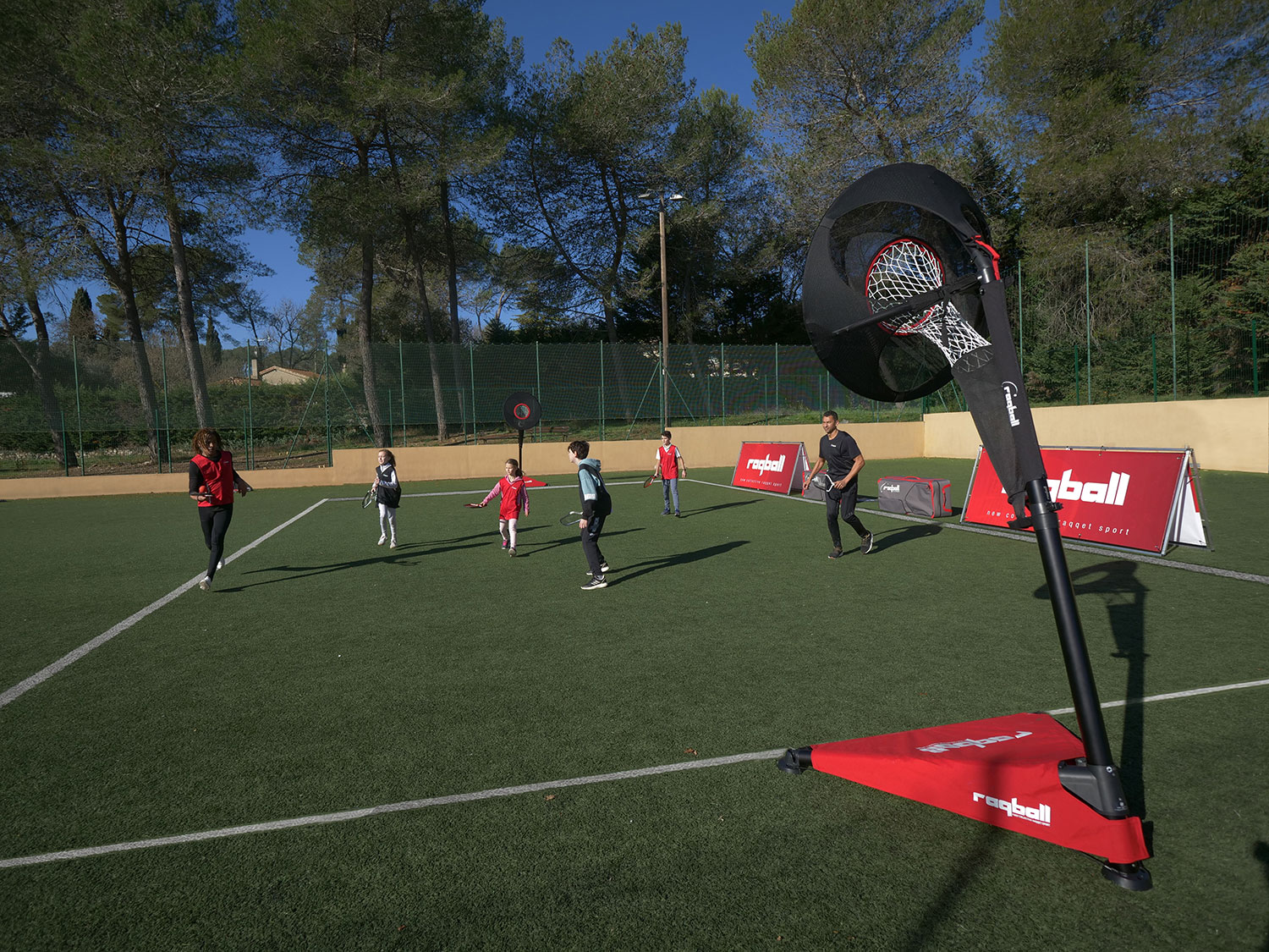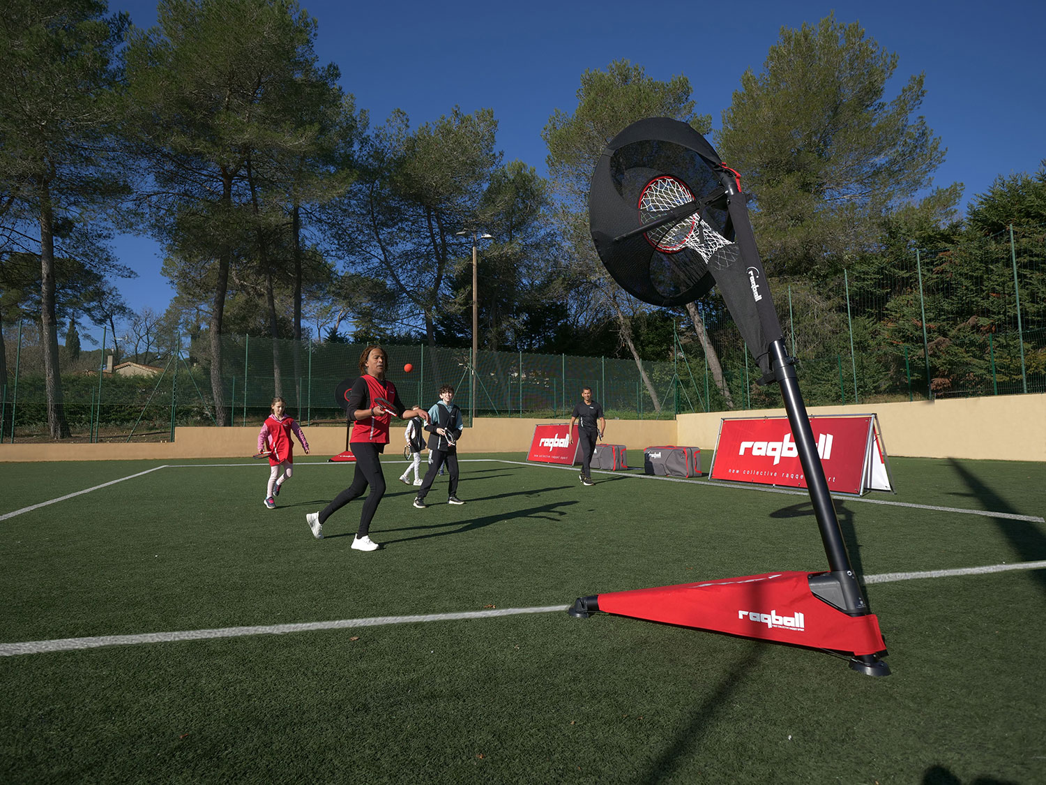 La TARGGET est le cercle de but emblématique du Raqball ou les joueurs de chaque équipe doivent marquer. La TARGGET est conçue pour rendre le jeu dynamique et stratégique. Unique en son genre, elle offre plusieurs options de marquage, ajoutant une dimension tactique passionnante à chaque match. Maîtriser la TARGGET, c’est maximiser ses chances de victoire tout en rendant le jeu encore plus excitant !