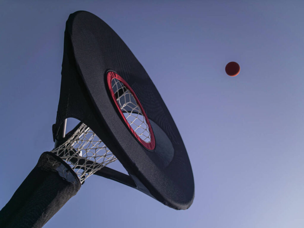 Chris Oven imagine un sport où deux équipes évoluent avec une raquette dans la main et une balle. Elles interagissent individuellement ou collectivement en se faisant des passes ou en dribblant, afin d’atteindre une cible par un tir.